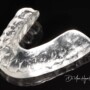 An occlusal splint, as seen here, is a device to protect the teeth from damage caused by grinding together.
